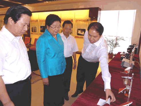 全国人大常委会副委员长、全国妇联主席顾秀莲(左二)、江苏省省委书记梁保华(左一)在常州市市长王伟成(右二)陪同下视察研究院工作