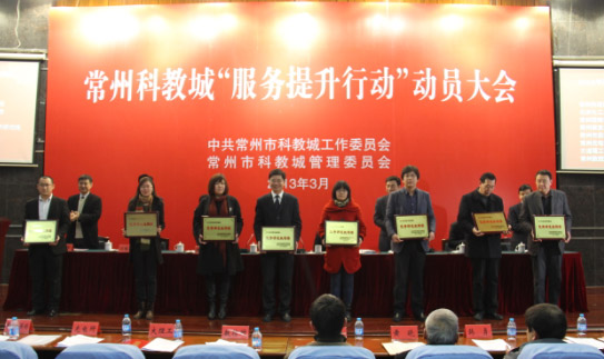 2013年3月22日,常州科教城召开“服务提升行动”动员大会,市委常委、科教城党工委书记徐光辉出席大会并讲话,科教城管委会主任许小波主持大会。大会对2012年度常州科教城创新创业先进单位和个人进行了表彰。南京大学常州高新技术研究院荣获2012年度常州科教城“优秀研发机构奖”,这是常州科教城设立“优秀研发机构奖”奖项以来,研究院连续四年获得该荣誉;研究院支部书记郝卫强博士荣获“金凤凰人才青年蓓蕾奖”,研究院还获得1项“创新成果奖”。陈强院长接受了《常州新闻》记者采访,并在大会上作了交流发言。