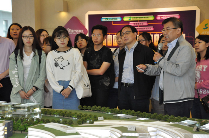 5月22日下午,参加课程学习的南京大学及兄弟院校的同学、科学园区的企业人员60多人来到位于徐庄的先声药业总部。先声集团高级顾问殷晓进和先声药业临床前研究所高级总监唐锋博士带领大家参观了先声集团药物研究院及精准医疗百家汇的各个技术平台、分析测试中心和入驻的新创生物医药公司。
