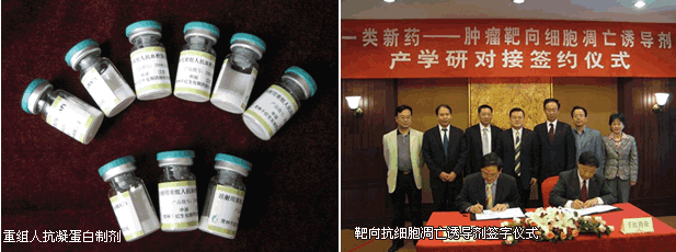 研发基地与常州千红生化制药有限公司合作,共同开展人抗凝蛋白的新型抗凝血剂的研究项目,已经完成包括发酵和分离纯化的中试工艺和制剂处方研究和临床前研究,实验结果非常理想,预计2009年可望进入临床实验。2009年4月,实验室又将经10多年悉心研究发明的国家一类新药--肿瘤靶向细胞凋亡诱导剂的技术转让给了常州千红生化制药有限公司。